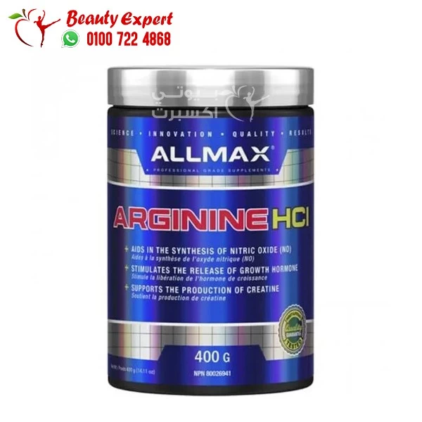 مكمل ارجنين هيدروكلوريد Arginine HCL من انتاج شركة ألماكس نوتريشن ،فهو عبارة عن مسحوق بلوري أبيض نقي للغاية مخمر، يستخدم لتحقيق أقصى قدر من الاستقرار وزيادة القابلية للذوبان، وزيادة الامتصاص ويزيد من المستويات الطبيعية لهرمون النمو وزيادة قدرة الجسم على استهلاك واستخدام الأكسجين، ويرجع ذلك أساسا إلى قدرته على زيادة مستويات أكسيد النيتريك فيزيد توسع الأوعية، ويعد ارجنين حمضًا أمينيًا يتم إنتاجه بشكل طبيعي في الجسم، ولكن في بعض الأحيان يحتاج جسمك إلى أكثر مما هو متاح، وتعد مصادر الغذاء مثل الفول السوداني واللوز مصادر طبيعية ومن اهم فوائد هذا النوع:
