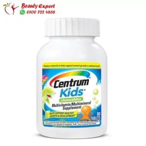 - توفر تركيبة سنتروم للأطفال جميع الفيتامينات والمعادن للأطفال من عمر أربع سنوات وصمم على شكل حبوب مضغ ليتقبلها الطفل.
