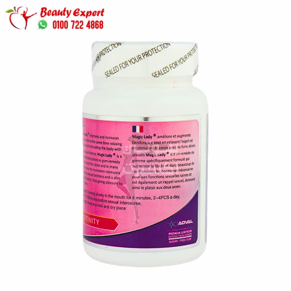 Magic Lady Gum helps stimulate sexual desire in women naturally without forcing the body or disrupting its balance. It works by gradually enhancing libido, restoring passion and desire in intimate relationships, and reducing cases of sexual coldness.