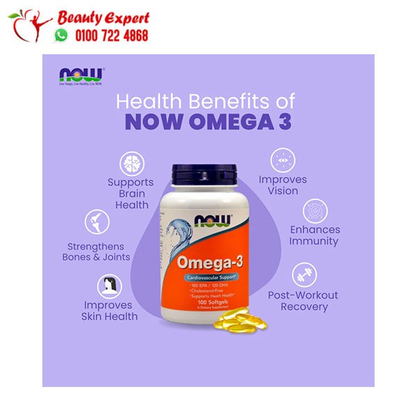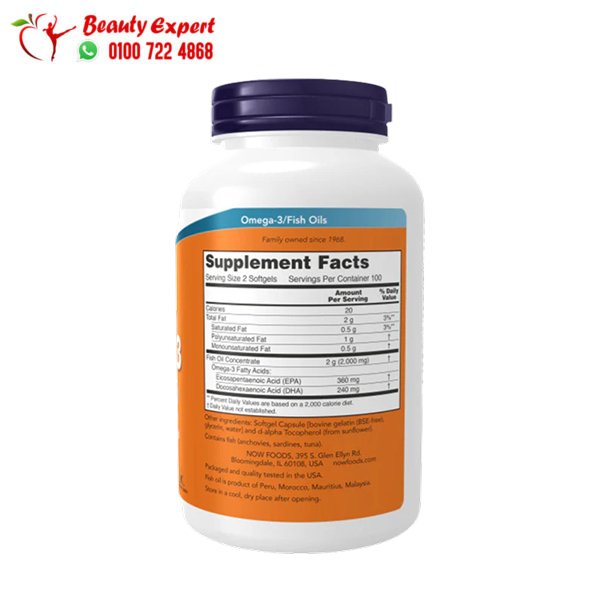 Support your overall health with NOW Foods Omega-3 Capsules 180 EPA / 120 DHA. Order now at the best price with fast and secure delivery across all governorates. 01007224868 – 01064496005