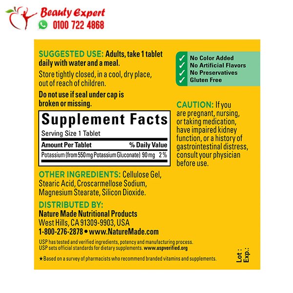 Price of Nature Made Potassium Gluconate 550 mg Capsules in Egypt 2026