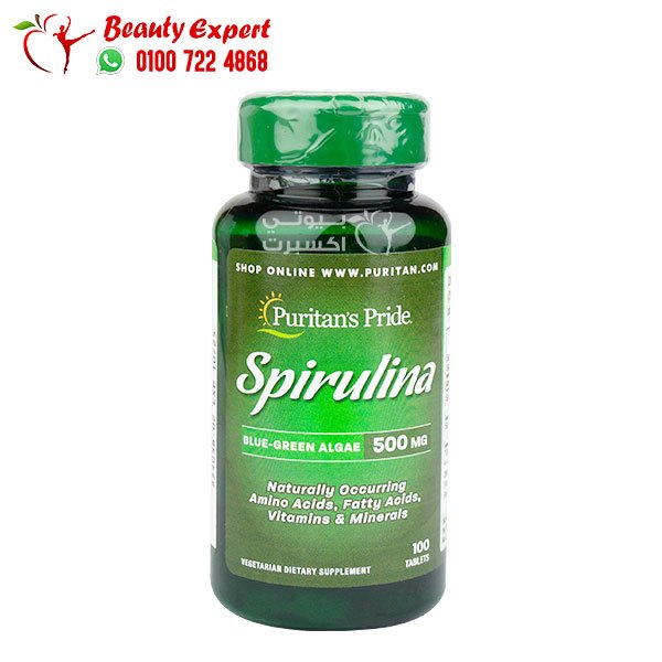 Spirulina 500mg capsules are available at Beauty Expert at a discounted price, 1025 EGP per package.