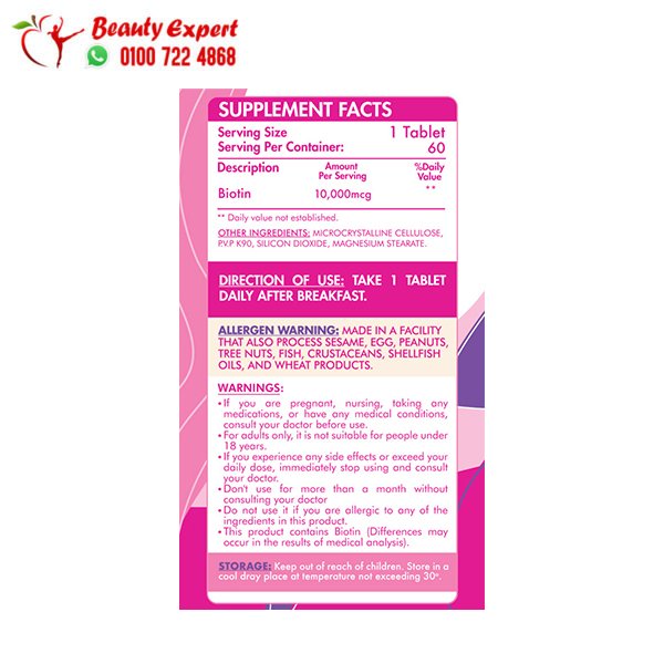 احصلي الآن على أقراص البيوتين 10000 لنمو شعر أقوى وأكثر كثافة – 01007224868 – 01064496005