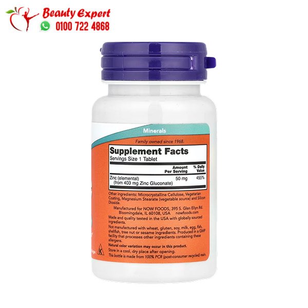 مميزات أقراص الزنك 50 ملجم NOW Foods