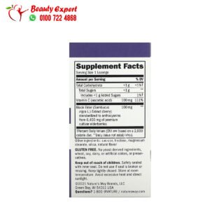 أقراص للمناعة من توت الخمان الاسود لدعم المناعة Nature’s Way, Sambucus Elderberry، مكملات غذائية مصنوعة من خلاصة البيلسان أو الخمان الأسود الغني بمركبات Flavonoid BioActives، يستخدم توت الخمان الأسودتقليديًا لتحسين الاستجابة المناعية ومحاربة أعراض البرد والإنفلونزا.