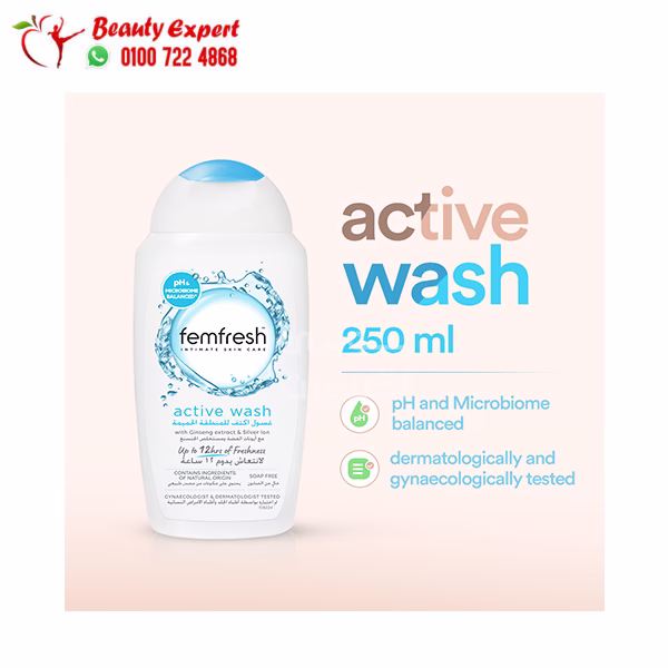 - غسول فيم فريش أكتيف يرطّب ويُنعش المنطقة الحساسة.