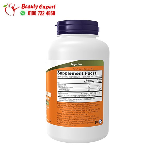 - جلوكومانان 575 ملجم من ناو فودز يدعم التحكم في الشهية وصحة الجهاز الهضمي.