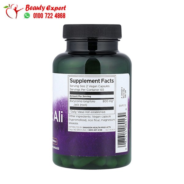 - تونجكات علي (Eurycoma longifolia) مستخلص: 400 ملجم لكل كبسولة.