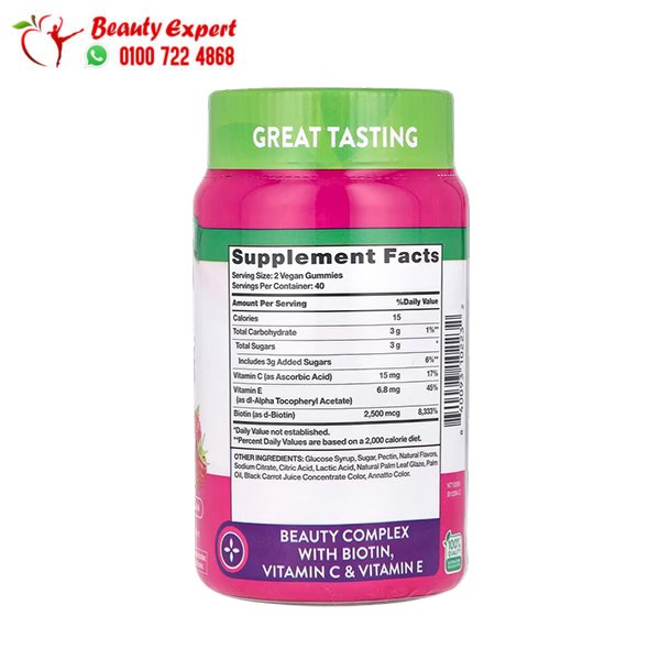 - بيوتين 2500 ميكروجرام: لدعم صحة الشعر، البشرة، والأظافر.
