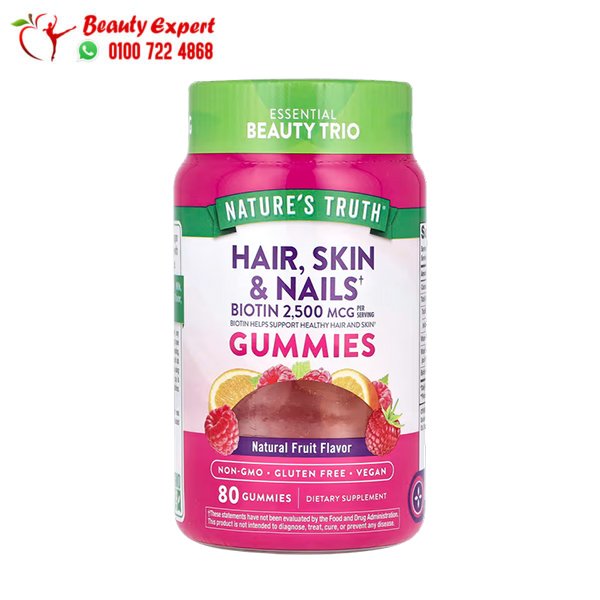 ادعم جمال شعرك وبشرتك وأظافرك مع لبان البيوتين 2500 ميكروجرام Nature’s Truth. اطلبه الآن بأفضل سعر وتمتع بتوصيل سريع وآمن لجميع المحافظات. 01007224868 – 01064496005