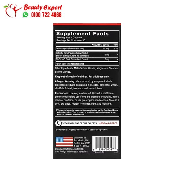 مكونات مكمل اليوهمبين 6 ملجم Force Factor