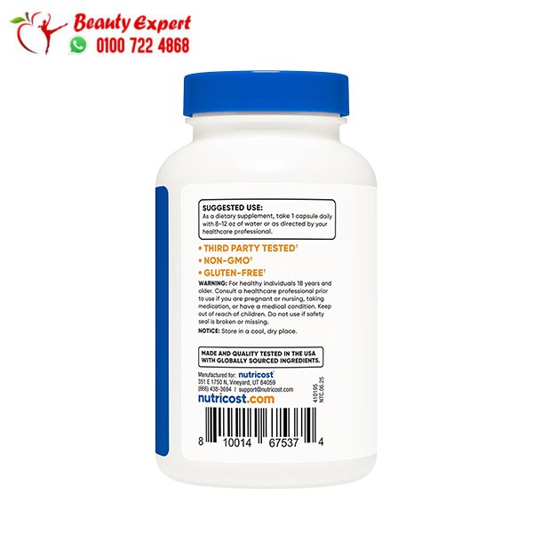 منتج من شركة Nutricost المعروفة بالتزامها بمعايير الجودة العالية والتصنيع وفق ممارسات GMP.