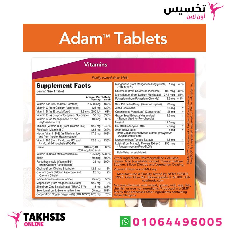 - ملتي فيتامين أدم للرجال لدعم الصحة العامة والطاقة.