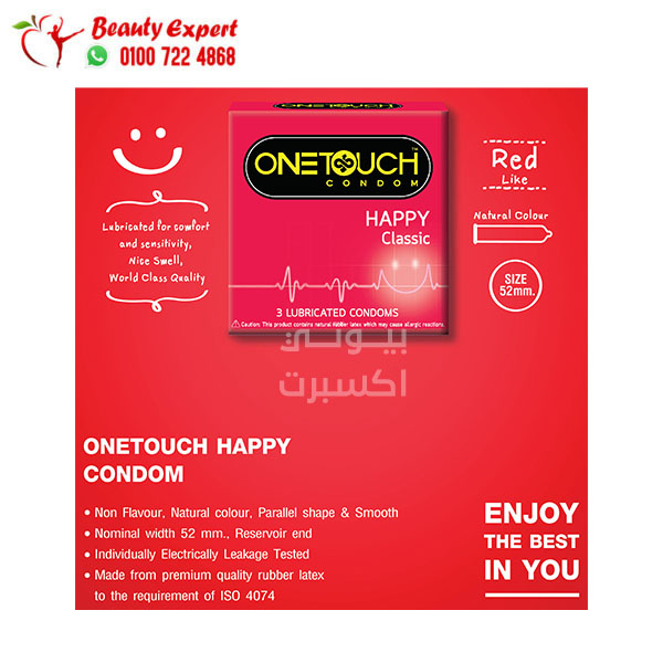 يمكنك شراء منتجات السعادة الزوجية الأصلية من موقعنا بسعر حصري وجودة مضمونة، حيث يبلغ سعر واقي One Touch Happy Classic 3 واقيات في مصر فقط 40 جنيه مصري .
